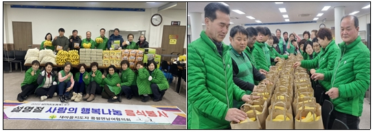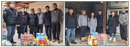 | □ 용평면새마을지도자남녀협의회, 명절 맞이 선물 전달 ੦ 지난(1.24.), 용평면새마을지도자남녀협의희(회장 유종성, 정해옥)는 설 명절을 맞아 취약계층과 홀몸 어르신 100여 가구를 대상으로 명절 꾸러미 선물을 전달하였음.