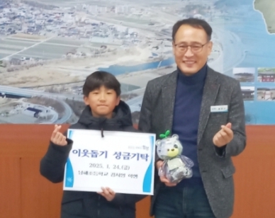 함양 안의면 김시영 학생 사랑의 저금통 기탁어려운 이웃을 위한 이웃돕기 성금 전달김주영 기자 /
