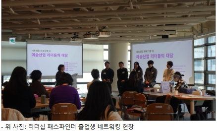 지난 1월 17일 수료생 및 예비수강생 등을 대상으로 ‘예술산업아카데미 리더십 패스파인더 졸업생 네트워킹 데이’를 운영했다. 2018년부터 아카데미가 진행한 ‘예술산업 리더십 패스파인더’의 수료생들이 모여 예술기업·단체의 리더로서 경험과 노하우를 공유하는 시간을 가졌다.