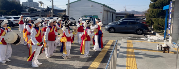 함양 안의농협 풍물패 신년 안녕기원 지신밟기면민들의 무사평안과 건강을 기원김주영 기자 / |