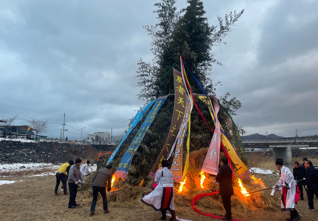 | 풍년기원제를 올린 후, 참석한 기관·사회단체장은 점화봉을 하나씩 들고 달집을 둘러싸고 사회자의 구령에 맞춰 동시에 달집에 불을 붙였다. 예쁘게 활활 타오르는 달집 앞으로 면민들은 하나둘씩 나와 각자 준비한 부적 등을 태우고 간절하게 소원을 빌었다.