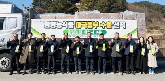 함양군은 19일 오후 백전면 서부권농기계임대사업소에서 백삼종 함양군 부군수를 비롯한 수출 관계자 등이 참석한 가운데, 함양 농식품을 미국 동부에 수출하는 선적식을 가졌다고 밝혔다. 이번 수출 선적은 함양군 백전면에 소재한 운림농원(대표 손영현)에서 생산한 매실차 8톤, 3,200만 원 상당으로, ㈜글로벌무역을 통해 뉴욕 한성식품으로 유통될 예정이다.