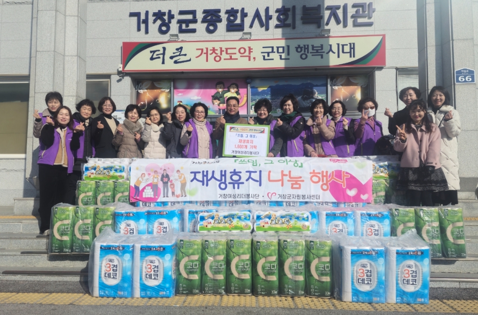 경남여성리더봉사단 거창지부, 친환경 재생 휴지 1,600개 기부어린이집 원아들과 함께 우유 팩 모아 친환경 재생 휴지로 기부문화 참여정유근 기자 / |