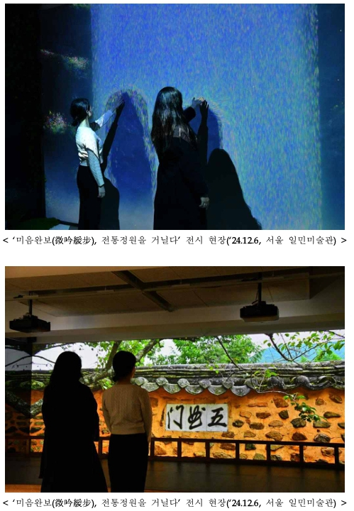 * 미음완보(微吟緩步): ‘나직이 읊조리며 천천히 걷다’라는 뜻(정극인(1401~1481)의 「상춘곡賞春曲」 속 글귀)으로, 단순히 정원을 감상하는 것을 넘어 자연과 교감하고 내면을 바라보는 심미적 과정을 담고 있음. * 전시 관람시간: 매일 10시~19시(입장마감 18:30), 무료관람