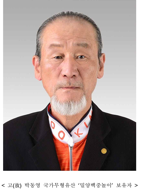 국가무형유산 ‘밀양백중놀이’ 박동영 보유자 별세국가무형유산 밀양백중놀이(1980. 11. 17. 지정)정호 기자 / |