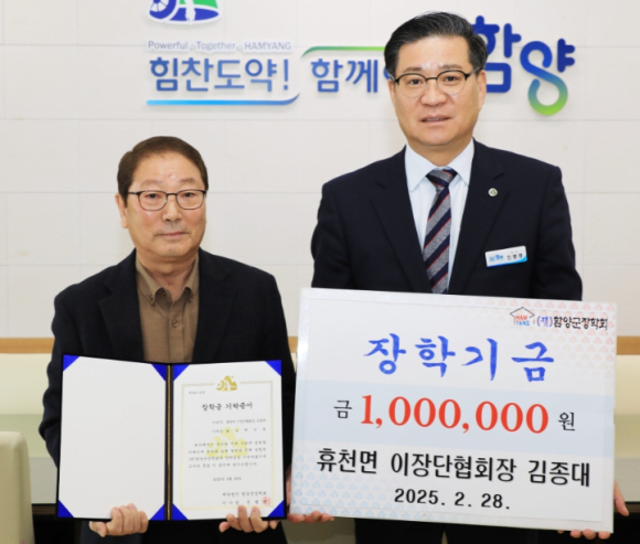 지역 인재들을 위한 따뜻한 손길, 휴천면에서 연이어휴천면 농업경영인회 100만 원, 김종대 휴천면 이장단협회장 100만 원김철상 기자 / |