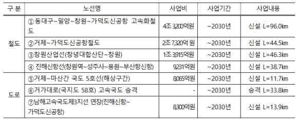 ** 국토부 : 가덕도신공항 건설사업 기본계획, 제5차 국가철도망 구축계획,