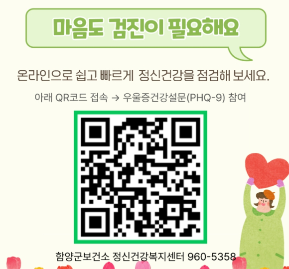 함양군, 언제 어디서나 정신건강검진 가능함양군보건소, 보건지소·진료소 정신건강검진 및 상시 온라인 검진 운영정호 기자 / |