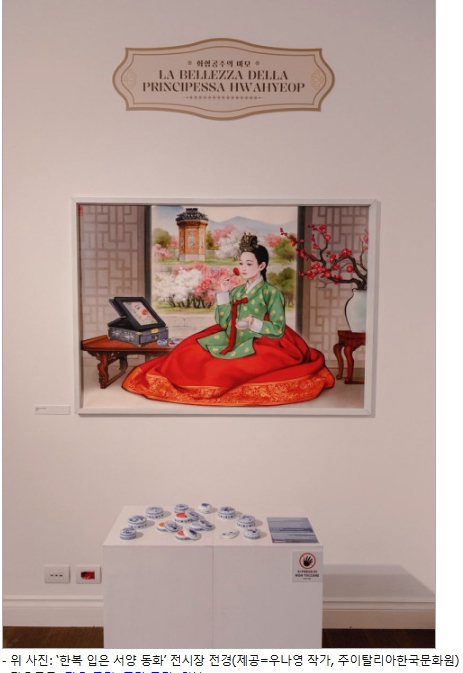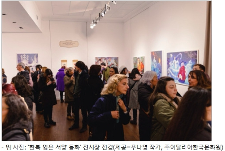 우나영 작가는 전시 특별행사로 지난 2월 26일 주이탈리아한국문화원에서 진행된 토크 콘서트에서 현지 관람객들과 함께 작품세계와 한복의 미학에 대해 깊이 있는 대화를 나누는 뜻깊은 시간도 가졌다. 특히 참가자들은 한복의 아름다움과 동화 속 캐릭터들이 한복을 입고 새롭게 탄생한 모습에 깊은 감동을 받았으며, 작가의 창작 과정과 해석에 대해 큰 호응을 보였다. 열띤 관심과 함께 진행된 이번 토크 콘서트는 한국 전통문화에 대한 이해를 넓히고, 한복이 지닌 고유한 매력을 현지인들에게 자연스럽게 전하는 특별한 시간이 됐다.
