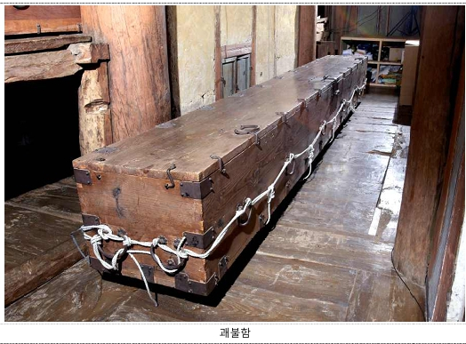 「부산 범어사 괘불도 및 괘불함」은 1905년에 금호약효 등 근대기를 대표하는 수화승들에 의해 제작된 대형 불화와 이를 보관하는 함이다. 괘불도는 10미터가 넘는 대형 불화로 범어사의 큰 법회 시 야외에서 사용되었으며, 전통불화 도상을 기반으로 현대적인 음영기법을 적극 활용한 20세기 초의 시대적인 특성이 잘 드러나 있어 근대기 불화 연구에 이정표가 될 만한 작품이다. 또한, 대웅전 뒤쪽의 벽 공간에 보관되었던 괘불함은 괘불도와 같은 금속 재질의 문양 장식이 있어 같은 시기에 제작된 것으로 보인다. * 괘불도 전체크기 : 세로 1,080㎝ × 가로 610㎝ * 괘불함 규격 : 길이 631.5㎝ × 높이 63㎝ × 두께 4㎝