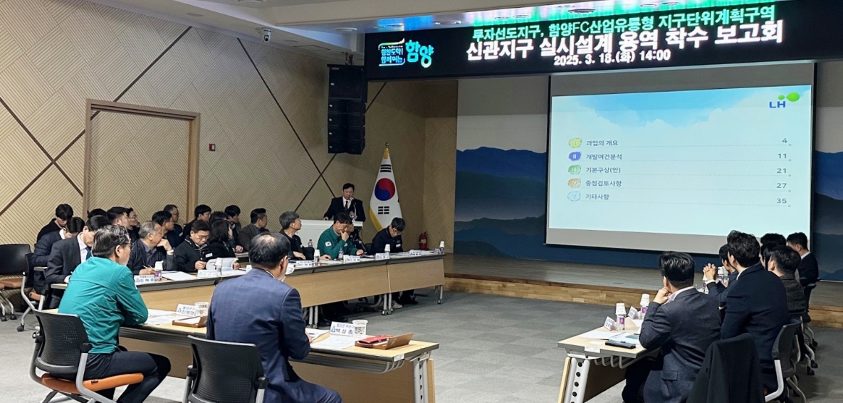 함양군, 신관지구 실시설계 착수보고회 개최‘e-커머스 투자선도지구’ 및 ‘함양FC 산업·유통형 지구’ 조성 본격화, 체계적 개발계획 수립김주영 기자 / |