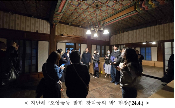 - 「오얏꽃등 밝힌 창덕궁의 밤」(4.2.~5.) 운영 / 선착순 예약(3.26. 오후 2시~)