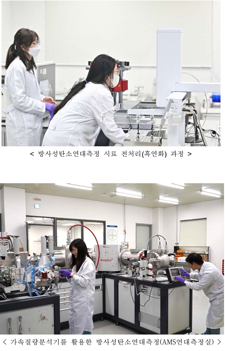 * 방사성탄소연대측정법: 뼈, 목재, 섬유류 등 방사성탄소를 포함한 유기물의 연대를 측정하는 방법이며, 가속질량분석기를 이용하면 조사대상에 극미량으로 남아 있는 방사성탄소 동위원소 분석이 가능함.