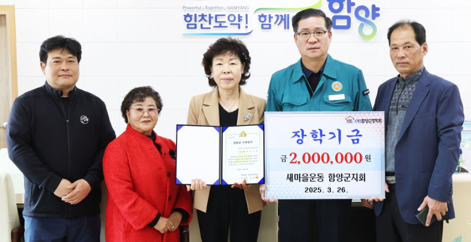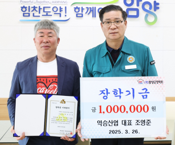 함양 익승산업(주) 조영준 대표·새마을운동 함양군지회 장학금 기탁고종시 곶감 축제’에서 운영한 식당 수익금을 모아 장학금을 기탁김주영 기자 / |