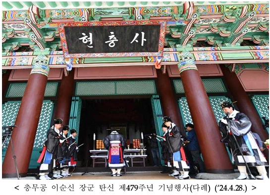 - 「충무공 이순신 장군 탄신 제480주년 기념행사」 개최(4.28. 오전 11시, 현충사)