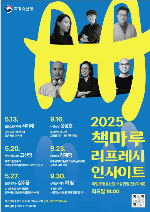 - <2025 상반기 무형유산책마루 인문학 강연>(5.13./5.20./5.27. 국립무형유산원 소공연장)
