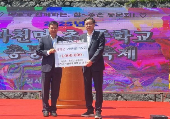 함양 마천초·중학교 총동창회, 고향사랑기부금 700만 원 전달윤상돈 회장이 각각 100만 원씩을, 총동창회 회원 일동이 500만 원을 기탁한용택 기자 / |