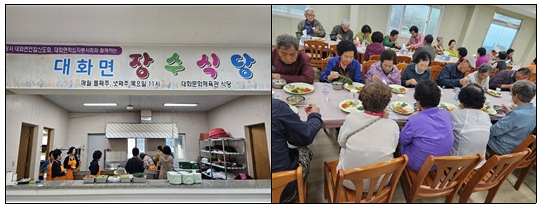 □ 법장사 신도회, 대화면 장수식당 운영 ੦ 어제(5.15.), 법장사 신도회(회장 박순득) 회원 10여 명은 대화문화체육관에서 장수식당을 운영하여 관내 어르신 100명에게 점심식사를 대접하였으며, 이번 장수식당에는 대화신협(이사장 오정희)에서 메밀부치기를, 대화인력(대표 이충석)에서 쑥절편을 후원하였음.