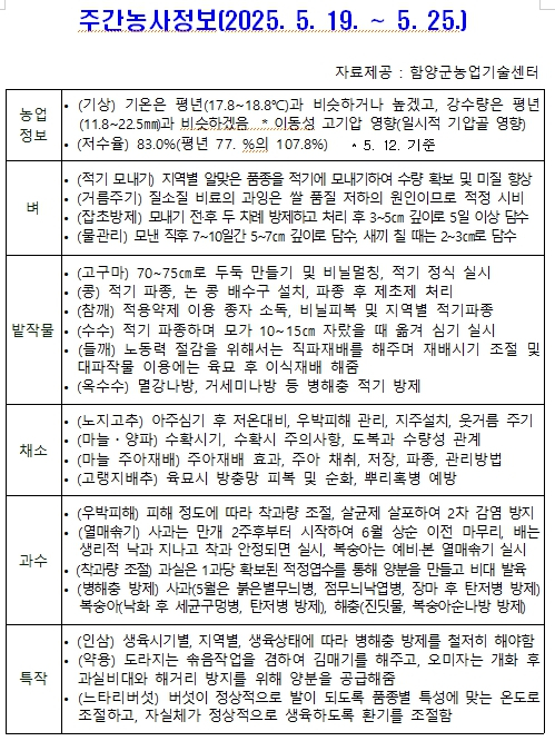 함양군 주간농사정보(저수율) 83.0%(평년 77. %의 107.8%)이광훈 기자 /