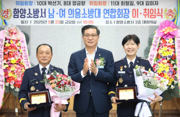 진병영 함양군수는 “어려운 여건 속에서도 지역사회 안전을 위해 헌신하신 박선기, 장금향 회장님께 깊이 감사드린다”라며, “앞으로도 최형길, 김미자 신임 회장님을 중심으로 의용소방대가 군민의 신뢰를 받는 조직으로 거듭나길 바라며, 재난 예방은 물론 안전한 함양을 만드는 데 군정과도 긴밀히 협력해 주시길 바란다”라고 당부했다.