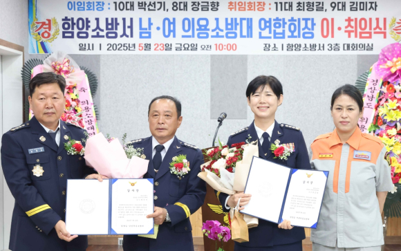 함양소방서(서장 손대협)는 23일 소방서 3층 대회의실에서 ‘의용소방대 남성‧여성 연합회장 이‧취임식’을 개최했다고 밝혔다.
