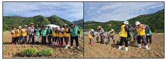 ....................................【미 담 사 례】..................................... □ 방림면번영회, 사회단체와 함께 이웃사랑나눔 옥수수 파종 활동 실시 ੦ 지난(5.27.), 방림면번영회(회장 유달용)는 방림면적십자봉사회(회장 서선옥) 등 지역 봉사단체 회원 11명과 함께 방림면 방림5리 휴경지에서 옥수수 파종 활동을 실시하였으며, 옥수수는 여름에 수확하여 각 마을 경로당에 전달할 예정임.