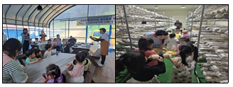 | □ 봉평면지역사회보장협의체, 슬기로운 농촌 생활기 프로그램 2차 운영 ੦ 어제(5.28.), 봉평면지역사회보장협의체(위원장 전재준, 연시권)는 공립봉평어린이집 원아 30명을 대상으로‘슬기로운 농촌 생활기 프로그램’ 2회차를 운영하였음. ੦ 이번 프로그램에서는 버섯의 종류와 생태에 관한 교육, 직접 버섯을 수확해 쿠키를 만드는 체험활동 등을 진행하였음.