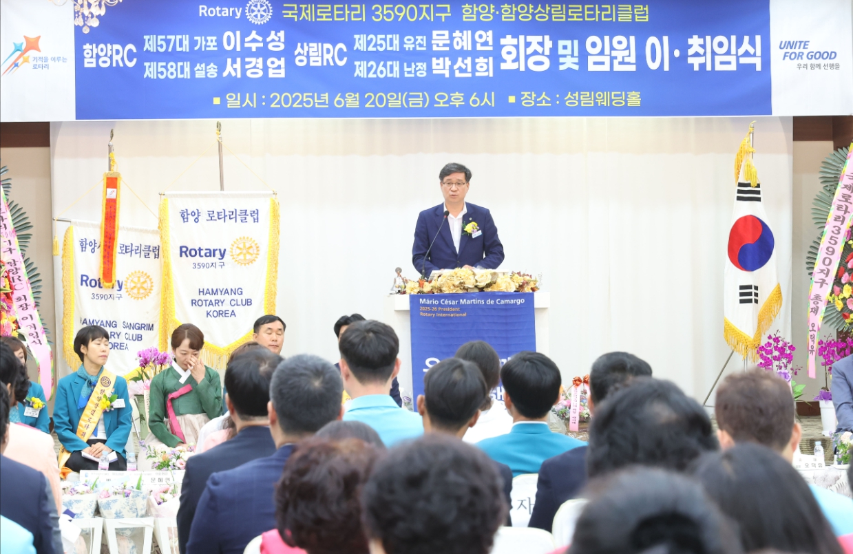 국제로타리 3590지구 함양·함양상림로타리클럽은 지난 20일 저녁 성림웨딩홀에서 제58대·제26대 회장 이·취임식을 성황리에 개최했다.