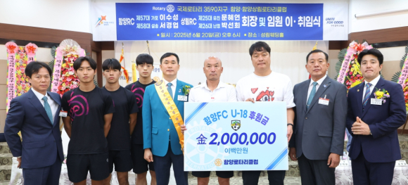 | 특히 이날 행사에서는 함양군축구협회 및 함양군 유소년축구팀을 위해 함양로타리클럽에서 후원금 200만 원, 함양상림로타리클럽에서 후원금 100만 원을 각각 기탁하며 의미를 더했다.