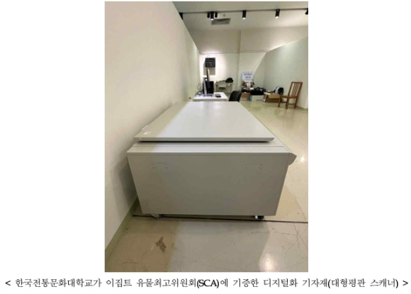 | 이번에 기증된 장비는 고해상도 스캐너, 북 스캐너, 대형 평판스캐너 등 이미지 감지기(센서) 기반의 디지털 스캔 장비와 유물 작업대, 보존용지 등이다.