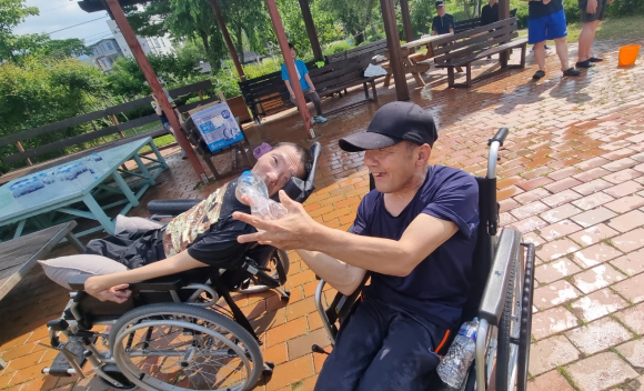 | 함양연꽃의집 이용자 박민혁님은 “처음에는 다가가기 힘들었는데 같이 물총놀이를 하니까 서로 친해지고 재미있었습니다..”라고 전했다.