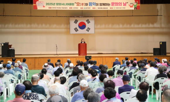 함양군의회 배우진 부의장을 비롯한 의원들이 7월 8일 함양시니어클럽 주관으로 고운체육관에서 열린 ‘효와 음악이 함께하는 문화의 날’ 행사에 참석해 어르신들을 격려하고 문화공연을 함께 즐기며 따뜻한 시간을 보냈다.