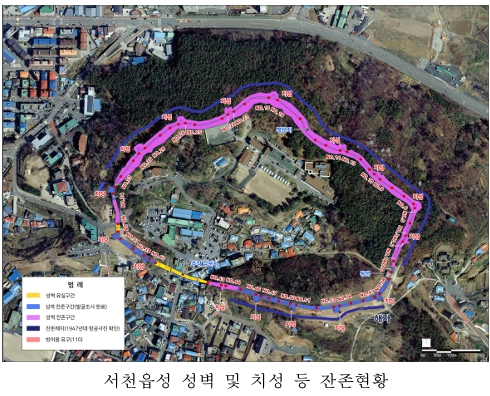 「서천읍성」은 조선 초기 세종 연간(1438년~1450년 경) 금강 하구를 통해 충청 내륙으로 침입하는 왜구를 방어하기 위해 돌로 쌓은 1,645m 규모의 연해읍성(沿海邑城)이다. 연해읍성으로는 드물게 자연 지세를 활용하여 산지(山地)에 축성되었으며, 일제강점기 ‘조선읍성 훼철령(1910년)’으로 전국의 읍성이 철거되는 수난 속에서 성 내부의 공해시설(公廨施設, 행정·군사 등의 공무수행에 필요한 시설)은 훼손되었으나, 남문지 주변 등 일부를 제외한 성벽은 대부분이 잘 남아있다. * 연해읍성(沿海邑城): 조선 초기, 주로 세종 연간에 왜구의 침입을 방어하고 지방행정의 안정을 도모하기 위해 국가 주도로 해안 요충지에 축조한 읍성 * 서천읍성 성벽 잔존현황: 둘레 1,645m 중 1,535.5m 잔존(약 93.3%)