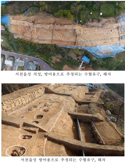 | 『충청도읍지』 등의 문헌에 따르면 「서천읍성」에는 치성(雉城)이 17개소가 있었던 것으로 판단되나, 현재까지의 조사결과 16개소가 대체로 90m의 간격을 두고 설치된 것이 확인되는데, 이는 1433년(세종 15년) 150보 간격(주척환산 155m)으로 설치하도록 한 기준보다 촘촘하게 배치된 형태로, 다른 읍성에서는 찾기 어려운 독특한 양식을 가지고 있는 등 학술적인 가치 또한 크다. * 치성(雉城): 성 밑에 접근하는 적을 효과적으로 방어하기 위해 성벽에 돌출하여 쌓은 시설 * 주척(周尺): 고려~조선에 걸쳐 사용된 길이를 재는 단위로 1주척=20.7cm, 1보(步)=5주척