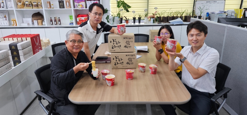 합천군(군수 김윤철)은 17일 기존 합천 양파라면(봉지)에서 새롭게 맛과 품질이 리뉴얼된 “水려한 합천 양파 컵라면”을 개발해 출시한다고 밝혔다. 앞서 2016년 지역 로컬푸드 및 6차산업의 일환으로 개발한 ‘해와人 양파라면’은 지자체 최초로 개발하여 소비자에게 많은 사랑을 받은 제품이다. 이번에 출시되는 양파 컵라면은 소비자가 빠르고 편리하게 섭취할 수 있는 간편 편의식 즉석 컵라면으로 합천군농업기술센터 농업유통과에서 직접 개발하고 농업정책과에서 생산 지원하며, 농업회사법인 합천유통(주)이 판매하는 방식이다.