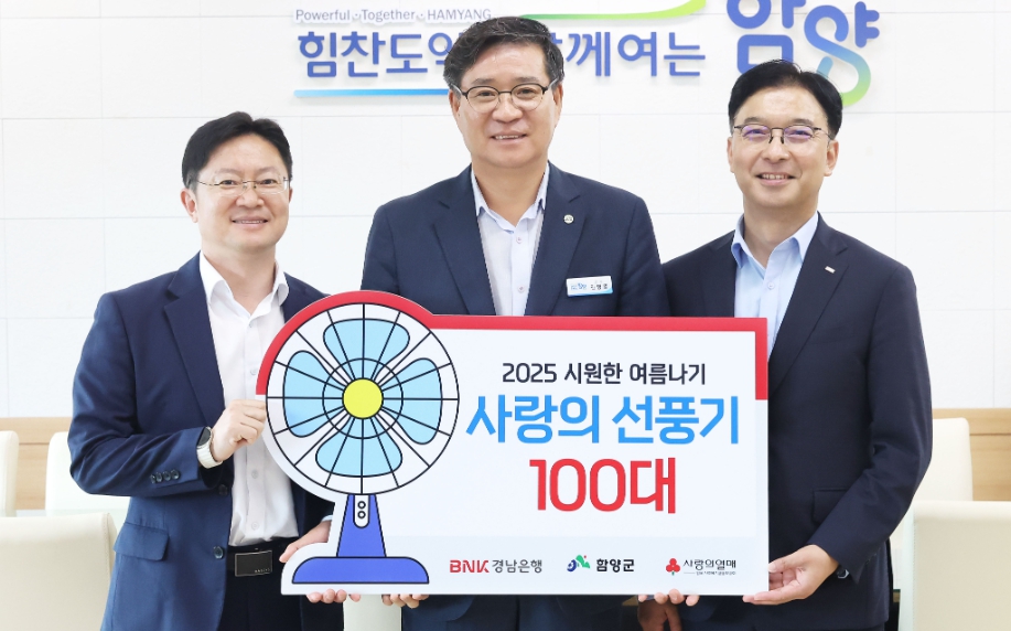 비엔케이(BNK) 경남은행, 함양군에 선풍기 100대 기부21일 시원한 여름나기를 위한 선풍기 100대 나눔한용택 기자 / |