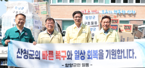 함양군, 수해 입은 산청·합천군에 구호 물품 전달진병영 군수·신성범 국회의원 직접 방문, 긴급 물자·복구 장비 지원 및 이재민 위로김주영 기자 / |