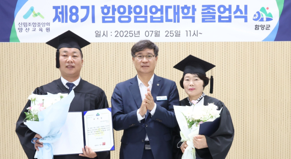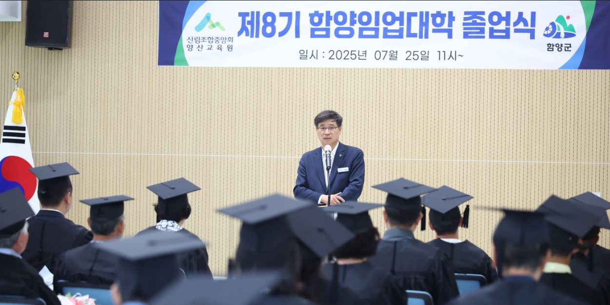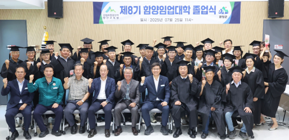 함양군은 지난 25일 산양삼특화산업진흥센터 강의실에서 졸업생과 임업 관계자 등 50여 명이 참석한 가운데 ‘제8기 함양임업대학 산림 최고경영자(CEO) 과정’ 졸업식을 개최했다.