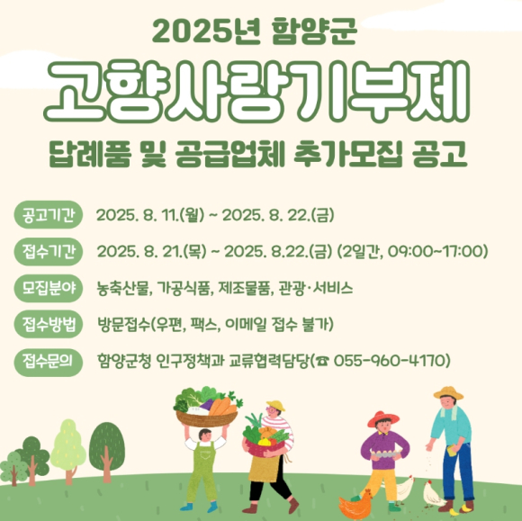 함양군 고향사랑기부제 답례품 및 공급업체 추가 모집답례품 다양화를 통한 기부자 선택의 폭 확대, 기부 활성화 기대정호 기자 / |