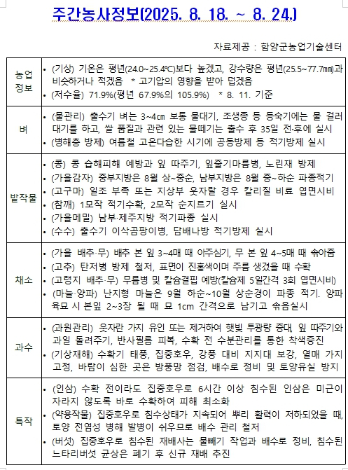 함양군 주간농사정보(저수율) 71.9%(평년 67.9%의 105.9%)김도형 기자 /