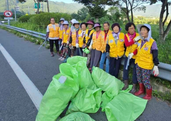 함양 서상면 적십자부녀봉사회 관내 환경정화 봉사활동불법 투기 쓰레기 수거, 생활폐기물 정리 등 환경미화 활동에 구슬땀김도형 기자 / |