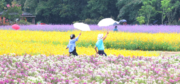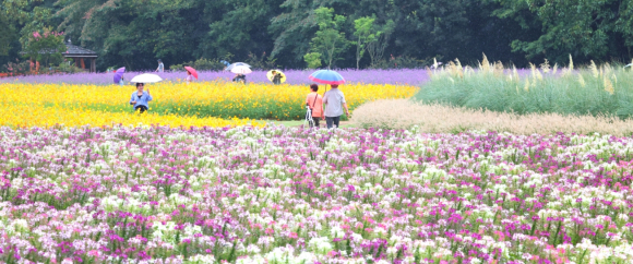 최치원의 상림공원 우중 꽃구경최치원선생이 만드신 상림공원 가을꽃 만개김도형 기자 /