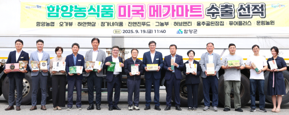 함양군은 19일 함양읍 함양농협 가공사업소에서 함양 농식품 34종, 총 9,100만 원 규모를 미국 메가마트에 수출하는 선적식을 개최했다고 밝혔다.