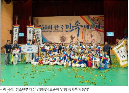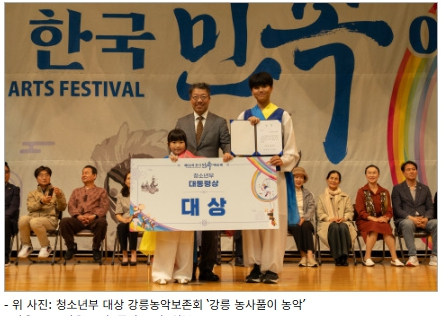 | 이번 경연을 통해 △일반부 ‘울산쇠부리소리’를 보여준 울산광역시 울산쇠부리소리보존회 △청소년부 ‘강릉 농사풀이 농악’을 보여준 강원특별자치도 강릉농악보존회가 대상을 수상하며 대통령상의 영예를 얻었다.