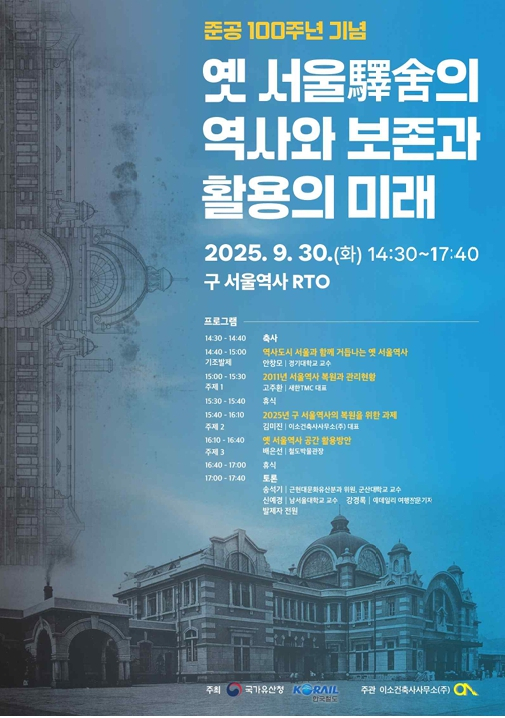 - 국가유산청·한국철도공사, 「옛 서울역사의 역사와 보존과 활용의 미래」 학술행사 개최(9.30. 구 서울역사 RTO)