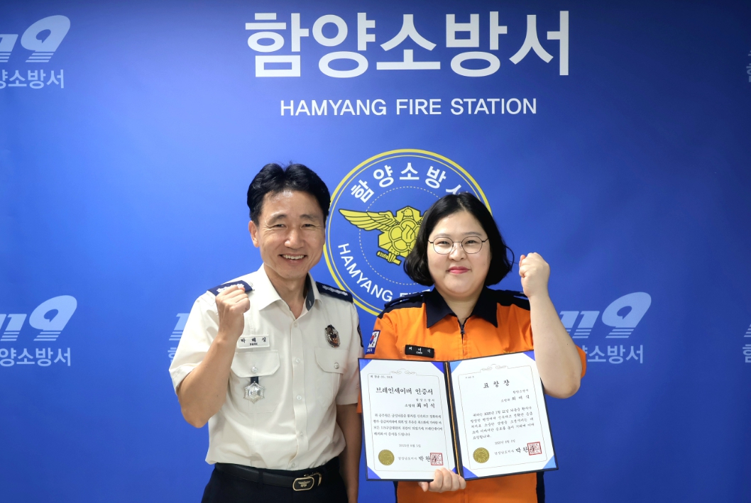 함양소방서, 상반기 브레인세이버 수여식 개최소방위 최미식 대원은 뇌경색 환자 구해이광훈 기자 / |