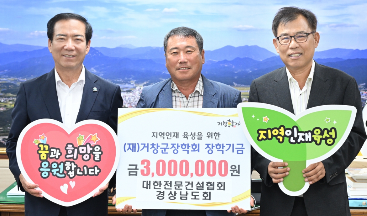 대한전문건설협회 경상남도회, 장학금 300만 원 기탁2006년부터 2025년까지 거창군장학회에 3,900만 원 기탁정호 기자 / |