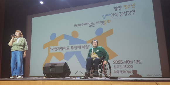 함양군 사회복지협의회(회장 오연교)는 13일 함양예술문화회관 대공연장에서 2025 함양 청소년 장애인식 감성강연을 진행하였다.