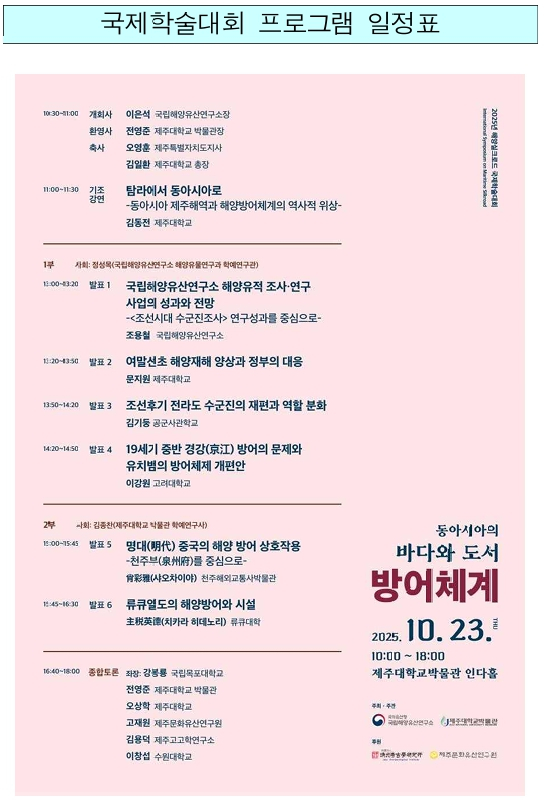 - 「제20회 해양실크로드 국제학술대회」 개최(10.23. 제주대학교박물관)