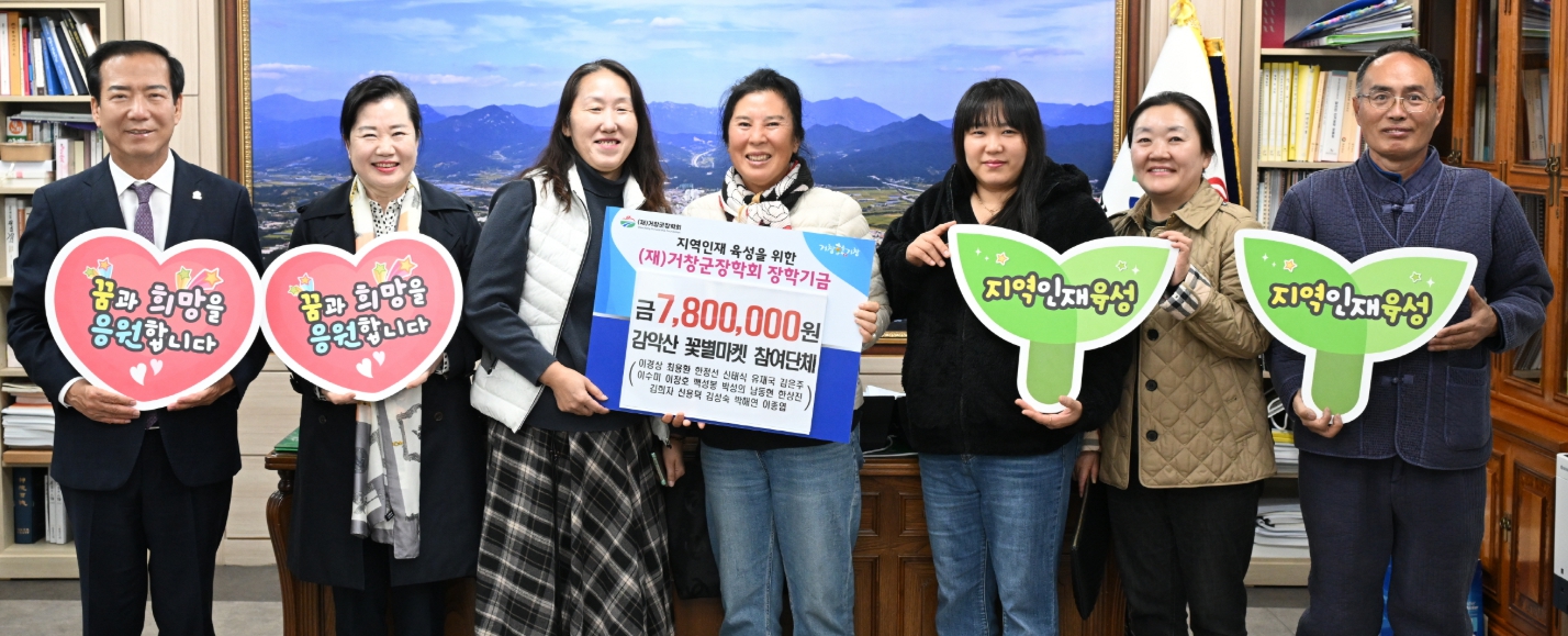 | 또한, 꽃별마켓에 참여한 거창군영농조합법인(대표 김태엽)은 100만 4천 원을 아림1004운동에 기탁했으며, △단지봉농장 △백초영농조합법인 △귀농귀촌엽합회 △꽃마시다 △누리샘터 등 17개 단체는 총 780만 원을 거창군장학회에 전달했다.